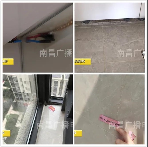南昌某小區(qū)有多位市民向記者反映,某小區(qū)精裝房集中交房時(shí),該小區(qū)精裝房除了漏水、開裂等問題,還存在瓷磚多處空鼓、大理石缺角、地板不平、電線接口直接裸露、房屋燈與精裝標(biāo)準(zhǔn)不符等系列問題。