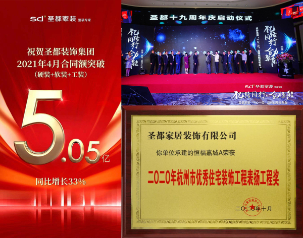周年慶活動(dòng)如火如荼地進(jìn)行過程中,喜訊不斷。4月16日,圣都家裝一心一億品牌發(fā)布會暨圣都19周年整裝盛典啟動(dòng)儀式盛大舉行,在八大行業(yè)頭部品牌共襄之下取得圓滿成功,圣都家裝為打造優(yōu)質(zhì)供應(yīng)鏈,為客戶提供更好的服務(wù)和產(chǎn)品跨出了堅(jiān)實(shí)的一步。4月20日,杭州市建筑裝飾行業(yè)協(xié)會住宅裝飾分會一屆四次會員大會隆重召開,圣都家裝再次榮獲“2020年杭州市優(yōu)秀住宅裝飾工程獎(jiǎng)”榮譽(yù)稱號。截止4月30日,圣都集團(tuán)4月合同額突破5.05億,同比增長33%。