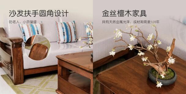 (圖為全包圓樣板間“檀香水榭”金絲檀木家具)