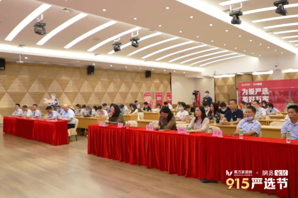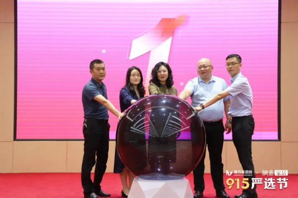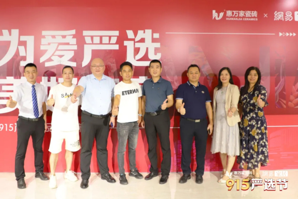 會上,由新明珠集團高總 、網易家居鄭哲女士、惠萬家品牌龐總、市場二部招總及南;萑f家楊總,共同按下啟動鍵,正式啟動惠萬家瓷磚915嚴選節(jié)。