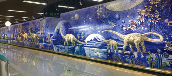 成都地鐵 7 號(hào)線理工大學(xué)站壁畫《夢(mèng)回遠(yuǎn)古》