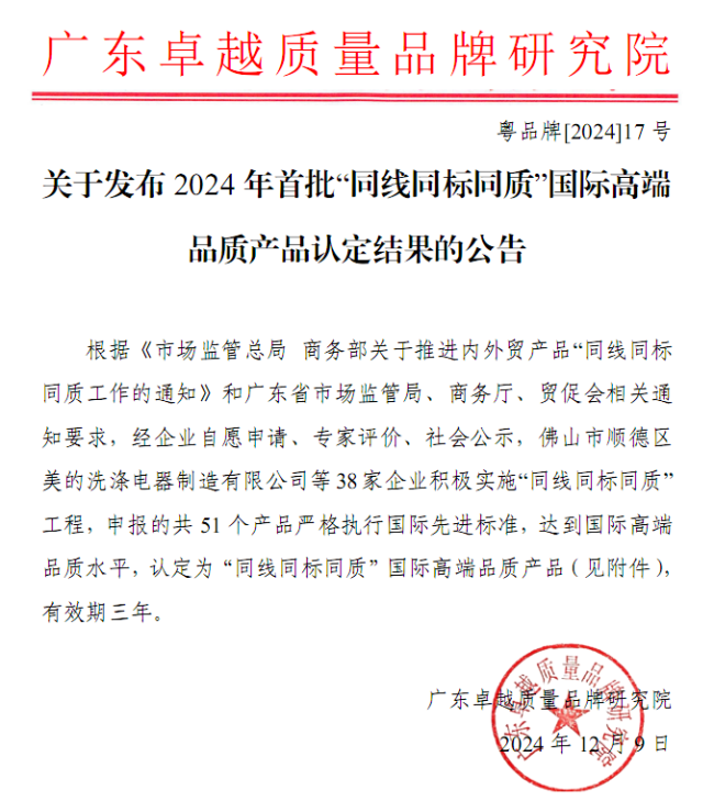 2024年12月9日,第六屆粵港澳大灣區(qū)知識產權交易博覽會暨國際地理標志產品交易博覽會在廣州中新知識城隆重舉辦,廣東首批“同線同標同質”(以下簡稱“三同”)國際高端品質產品名單在會上重磅發(fā)布。憑借國際高端品質水平,新明珠集團巖板、陶瓷磚、瓷質磚獲評“三同”國際高端品質產品名單。