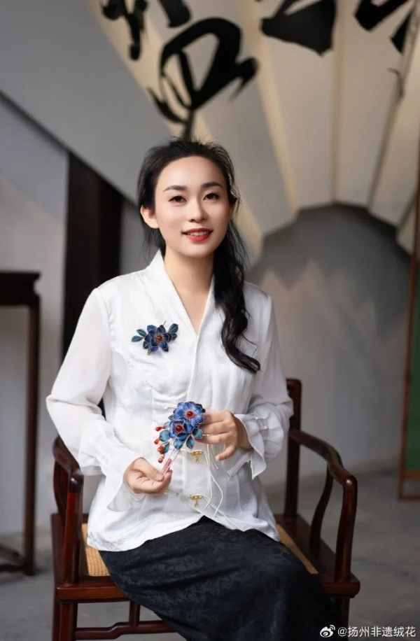 征珊珊是年輕一代的絨花非遺傳承人,她出生于揚州一個絨花制作世家,父母都是絨花制作匠人,從小在大院里耳濡目染,隨著閱歷的增長,珊珊更清晰地理解自己傳承非遺絨花的使命。2017開始跟隨母親學(xué)習(xí)絨花技藝。她說“絨花是中國的傳統(tǒng)手工藝,它的根在這里,缺的就是被人知道……”