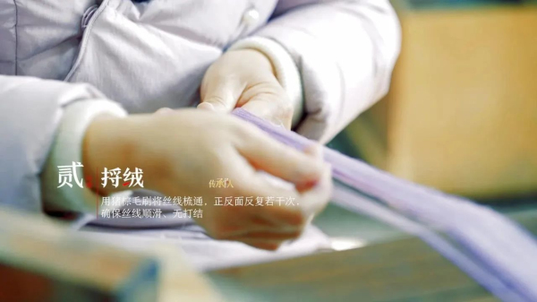 絨花的制作要經(jīng)過染色、劈絨、捋絨、勾條、打尖、傳花等近10道工序,每一道工序都要拿捏得當(dāng),恰到好處,不能有絲毫偏差,才能保證絨花整體效果的和諧統(tǒng)一。