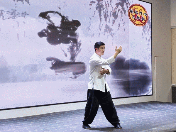 ▲傳統(tǒng)內(nèi)功太極拳研究院院長(zhǎng)、中國(guó)太極文化國(guó)際交流中心理事顏有余老師帶來精彩的“功夫”表演