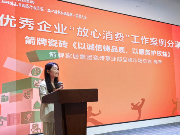 隨后,大會(huì)進(jìn)入了優(yōu)秀企業(yè)“放心消費(fèi)”工作案例分享環(huán)節(jié)。箭牌瓷磚作為行業(yè)佼佼者,其品牌市場(chǎng)總監(jiān)高幸代表箭牌家居集團(tuán)瓷磚事業(yè)部發(fā)表了題為《以誠信鑄品質(zhì),以服務(wù)護(hù)權(quán)益》的主題演講。高總詳細(xì)闡述了箭牌瓷磚在誠信經(jīng)營(yíng)、品質(zhì)管控、消費(fèi)者權(quán)益保護(hù)等方面的舉措和成效,分享了企業(yè)如何通過不斷創(chuàng)新和優(yōu)化服務(wù),贏得了廣大消費(fèi)者的信賴和支持。箭牌瓷磚的成功經(jīng)驗(yàn),為與會(huì)企業(yè)樹立了典范,激發(fā)了大家共筑誠信消費(fèi)環(huán)境的信心和決心。