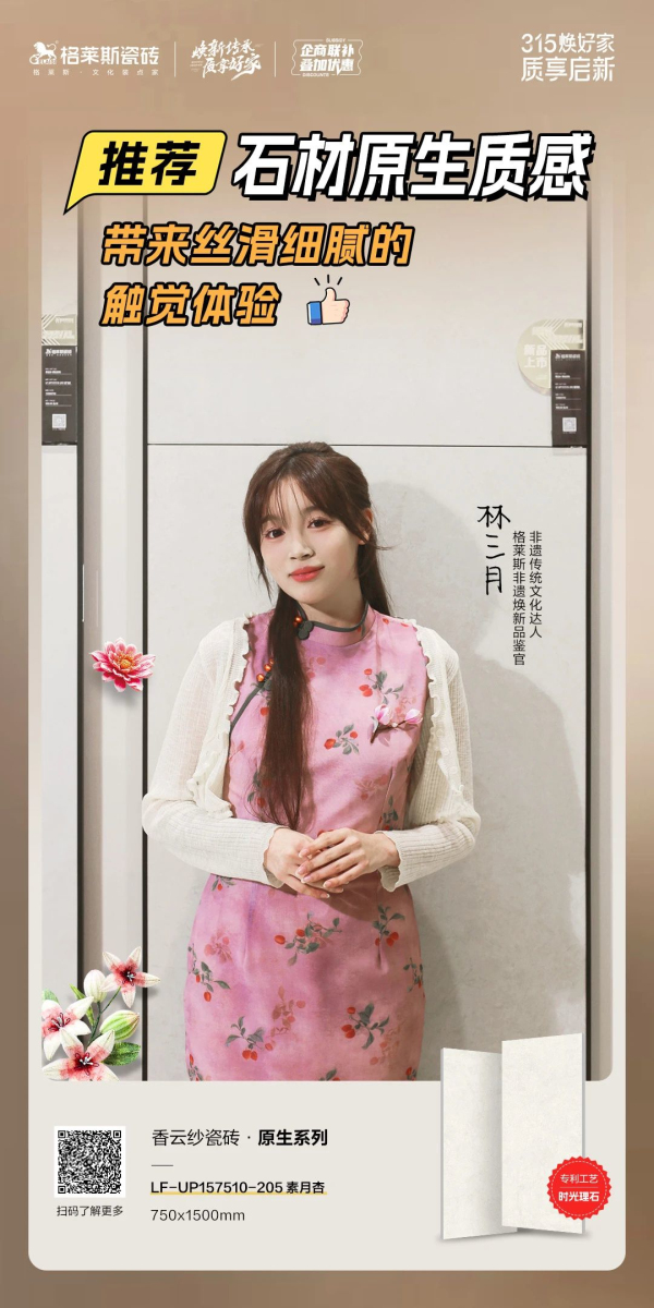 非遺文化作為頂級華流,在春晚的舞臺上華麗綻放,點燃了大眾對傳統(tǒng)文化的熱愛與自豪,就在今年315格萊斯發(fā)起“315煥好家 質(zhì)享啟新”全國聯(lián)動促銷,攜手非遺傳統(tǒng)文化達人林三月、絨花非遺傳承人征珊珊,以絨花為謀,以價值詮釋傳承煥新,推出非遺紀錄片《詩意東方 瓷韻絨光》。
