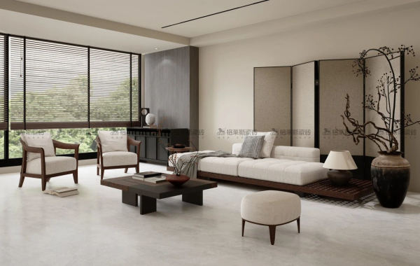 平衡的原生色系是自然中最耐看、最經(jīng)典的和諧的配色,給人平和自恃的舒緩雅致,磚面淡淡雪白的紋理如梨花漫天飄揚,如飛絮漫過無垠的蒼穹,云淡風(fēng)輕地把自然納入家中。