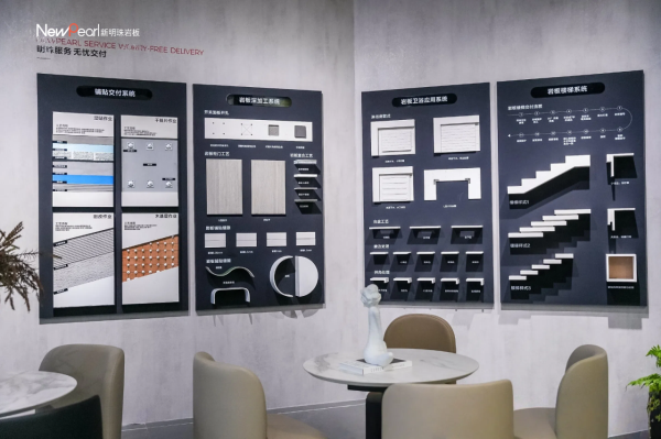 在展位上,新明珠巖板首次通過數字大屏全面展示了數智交付體系,通過智繪設計、智造生產、智控品質、無憂服務,構建貫通 “研發(fā) - 生產 - 設計 - 服務” 全鏈路數智生態(tài),消費者可以通過手機 APP 實時查看巖板鋪設、美縫等核心流程,并配套《交付白皮書》及七大服務保障,實現(xiàn)透明化交付服務體驗。