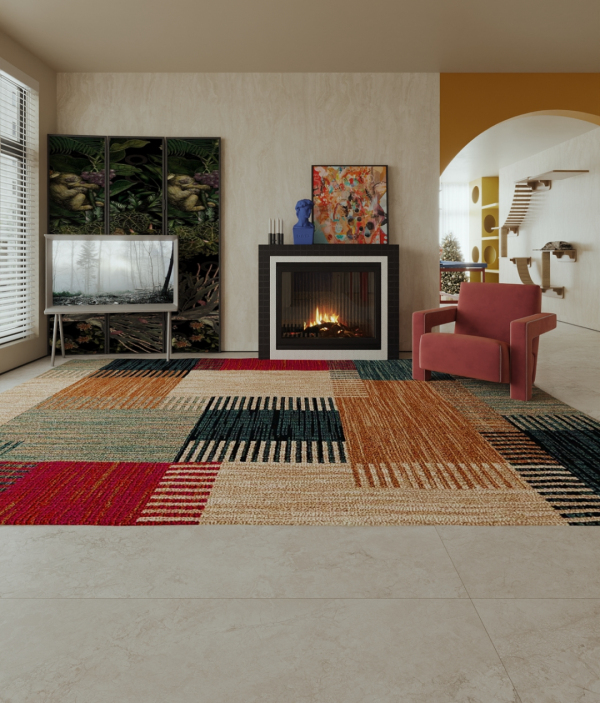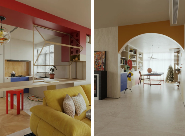 通透連通的空間讓軟裝有了更多玩法。基于全屋巴里·漫石系列干凈的底色與復(fù)古的原石質(zhì)感,全屋軟裝采用跳躍的色彩語言,融合棕、紅、黃、綠、藍(lán),打造出融合復(fù)古與頑皮的可露麗風(fēng)。