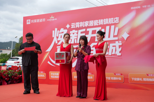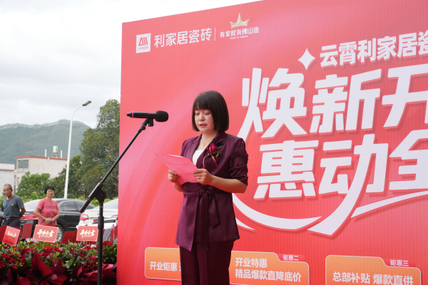 利家居瓷磚云霄店經(jīng)銷商溫艷芳上臺(tái)致辭:感謝各位尊貴的嘉賓蒞臨此地,與我們共同見(jiàn)證利家居瓷磚云霄店開(kāi)業(yè)盛典的這一難忘時(shí)刻。在絢麗的禮花與喜慶的鞭炮聲中,利家居瓷磚云霄旗艦店正式揭幕,開(kāi)啟新的征程。將秉持真誠(chéng)與熱情,為廣大消費(fèi)者提供卓越的產(chǎn)品與貼心的服務(wù),不辜負(fù)每一位顧客的信任與厚愛(ài)。