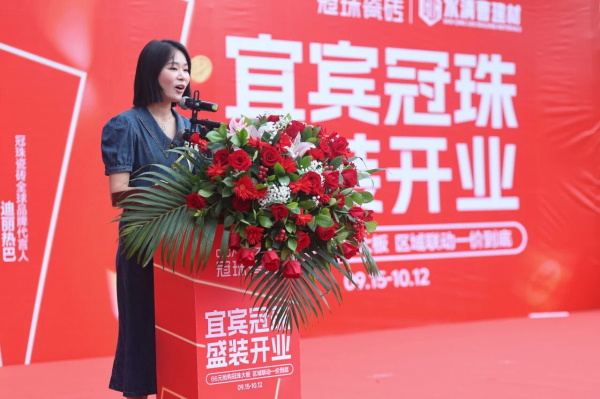 曹建材商貿(mào)有限公司副總經(jīng)理海翼向所有到場(chǎng)的嘉賓領(lǐng)導(dǎo)表示熱烈的歡迎和誠(chéng)摯的感謝,并發(fā)表致辭。她提到,作為冠珠瓷磚優(yōu)秀經(jīng)銷(xiāo)商代表之一,宜賓冠珠的盛裝開(kāi)業(yè),是與品牌深化戰(zhàn)略合作、共拓市場(chǎng)版圖的又一重要里程碑,期待與合作伙伴們繼續(xù)攜手同行,為宜賓當(dāng)?shù)叵M(fèi)者帶來(lái)更多高品質(zhì)家居體驗(yàn)。