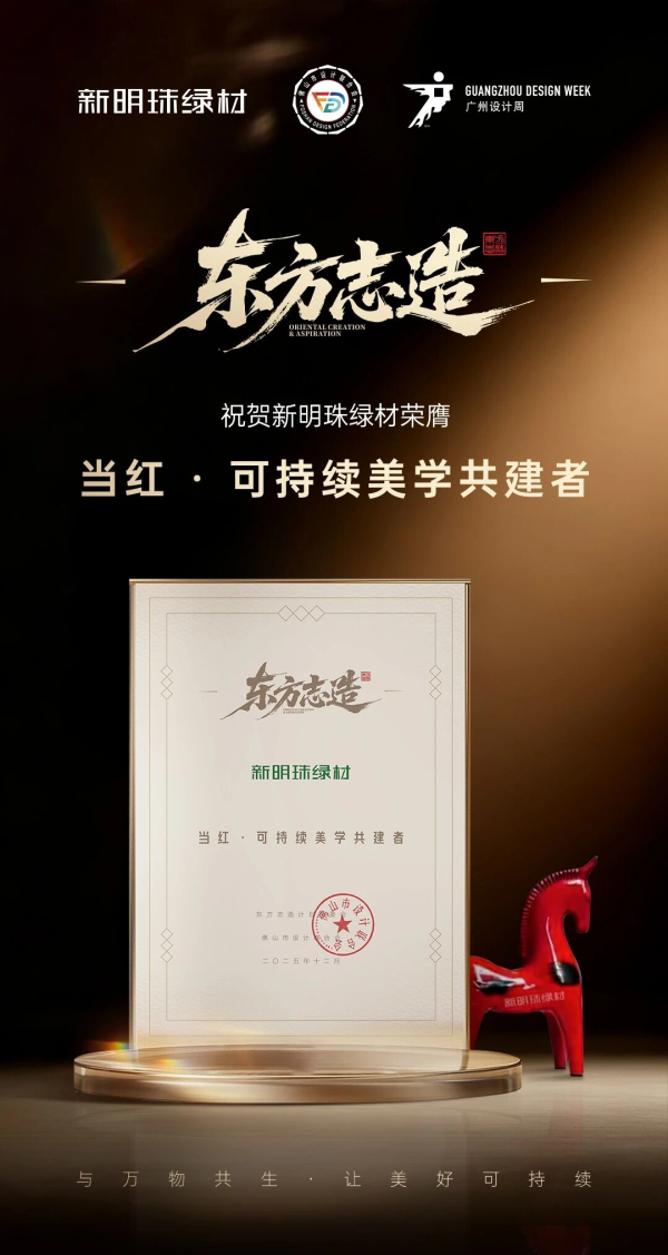 基于在綠色材料研發(fā)與美學(xué)價(jià)值創(chuàng)造方面的持續(xù)貢獻(xiàn),新明珠綠材在授牌儀式中榮膺“當(dāng)紅•可持續(xù)美學(xué)共建者”稱號(hào)。這一榮譽(yù)是對(duì)品牌堅(jiān)持“科技、綠色、美學(xué)”融合發(fā)展戰(zhàn)略的權(quán)威認(rèn)可。