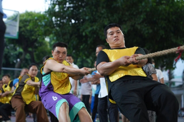 “一二、一二!”整齊的口號聲中,雙方隊員緊握長繩、全力以赴。拔河不僅是力量的對抗,更是意志與團(tuán)結(jié)的考驗。