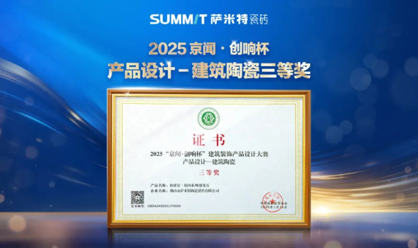 近日,薩米特瓷磚探索家・銀河系列憑借卓越的產(chǎn)品表現(xiàn)力,在全國(guó)人大會(huì)議中心舉辦的2026建筑裝飾材料流行趨勢(shì)發(fā)布大會(huì)暨2025京聞・創(chuàng)響杯建筑裝飾產(chǎn)品設(shè)計(jì)大賽頒獎(jiǎng)典禮上,榮耀摘得“產(chǎn)品設(shè)計(jì) - 建筑陶瓷三等獎(jiǎng)”。