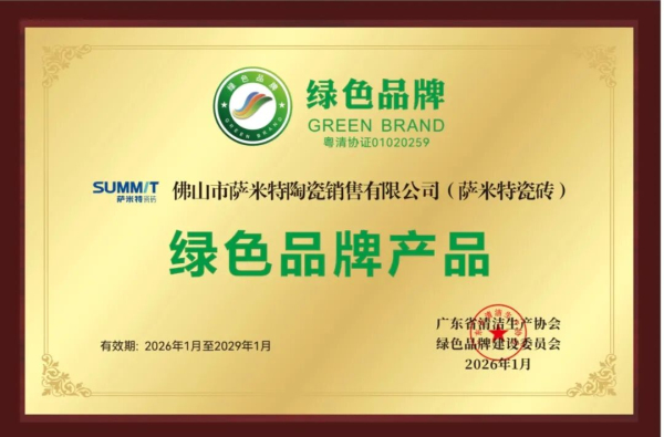 1月7日,廣東省清潔生產(chǎn)協(xié)會(huì)換屆大會(huì)暨第九屆廣東綠色低碳與清潔生產(chǎn)大會(huì)在廣州召開(kāi),薩米特瓷磚憑借在綠色制造與綠色產(chǎn)品創(chuàng)新領(lǐng)域的卓越表現(xiàn),榮獲大會(huì)頒發(fā)的“綠色品牌產(chǎn)品”榮譽(yù)證書(shū),綠色發(fā)展成果再次獲省級(jí)權(quán)威認(rèn)可。