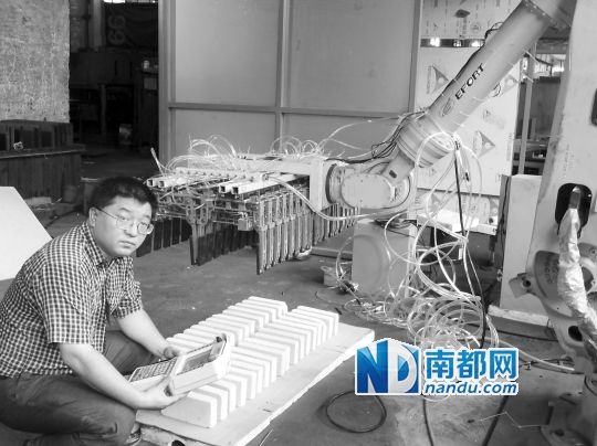 如今,在佛山市法恩潔具有限公司里,你可以看到機(jī)器人自動(dòng)噴釉,即使工廠粉塵再大,也無需擔(dān)心塵肺病。這是佛山市金天皓科技公司總經(jīng)理秦磊的成果。自2007年來到佛山,秦磊一直致力用工業(yè)機(jī)器人改造佛山陶瓷產(chǎn)業(yè)。目前,他所研發(fā)的工業(yè)機(jī)器人拋光打磨系統(tǒng)也接近完成。對(duì)于未來,秦磊表示,會(huì)努力將工業(yè)機(jī)器人應(yīng)用于五金、潔具、不銹鋼等佛山支柱性產(chǎn)業(yè),提升生產(chǎn)效率。