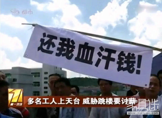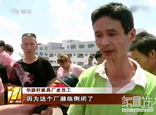 深圳電視臺7月29日報道,華源軒家具廠工人數(shù)月被迫放假,只能領取最低工資,許多老工人還面臨著工齡損失的困境,無奈之下,工人集體上天臺抗議,部分工人甚至威脅著要跳樓。