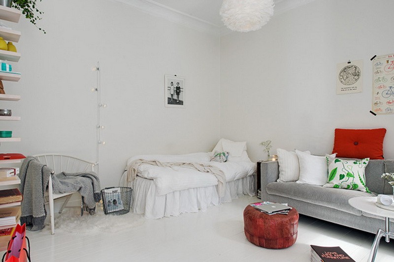 這間迷人的小公寓位于瑞典哥德堡一座上世紀的建筑內,面積約為33平米,屋主單身居住,所以一切以自己喜歡舒適為主,將睡床安排在了客廳沙發(fā)旁,白色為底的空間,十分良好的采光,加上低矮的家具,綠植點綴,小空間依舊可以溫馨舒適!