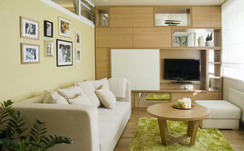 即便空間再小,也要溫馨舒適,該案例提供了非常好的解決方案。37平米的空間內,僅有一條L型通道,格局規(guī)劃依據(jù)過道依次排開。玄關自是隱形衣柜,鏡面“放大”了空間,對面是衛(wèi)生間和臥室。廚房的高光澤度整體櫥柜小巧實用,盡頭連著雙人餐桌,相當節(jié)約面積?蛷d也是一樣不缺,靈活的可移動單人沙發(fā)方便調節(jié)看電視的角度。墻面刷成了淡黃色,令人放松,營造出溫馨美好的感覺。