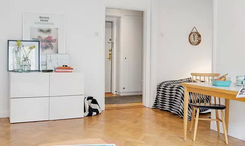 單身女性在外租屋大概會遇到兩種狀況,房租便宜不附家具 (或是家具超舊),房租稍貴有裝潢 (家具可能是裝潢木作)。假如你的狀況是租空屋,又想好好打理一下,瑞典的這間 43平米的單身公寓為我們做了不錯的示范。