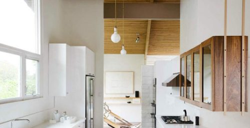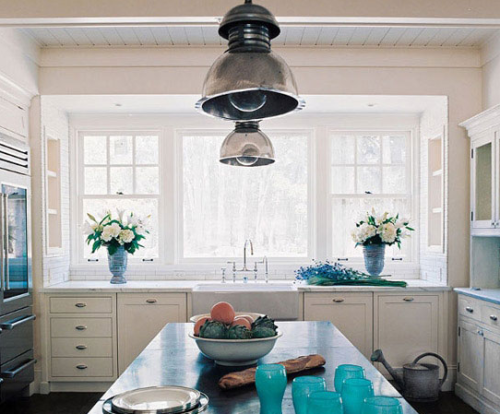 小編點評:大面積的窗戶讓廚房空間寬敞明亮,白色櫥柜發(fā)揮收納功能,并與窗戶保持統(tǒng)一的風格,讓廚房整體更融洽。內嵌式電器為廚房騰出更多可用空間,置于廚房中間的黑色吧臺方便了食物和廚房用具的擺放。