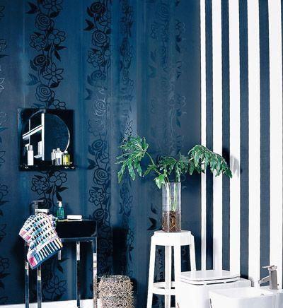 黑白水波紋地毯,墻壁上的花紋彩繪,令衛(wèi)浴生活變得新奇又浪漫