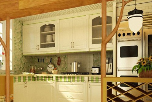 瓷磚不但可以鋪裝墻面,更可用來(lái)貼裝櫥柜表面。不只單純追求實(shí)用功能,更多是用以欣賞。經(jīng)過(guò)瓷磚貼面的櫥柜看起來(lái)雅致清新,由此搭配呈現(xiàn)出來(lái)的廚房更透著一股難以復(fù)制的田園風(fēng)情。