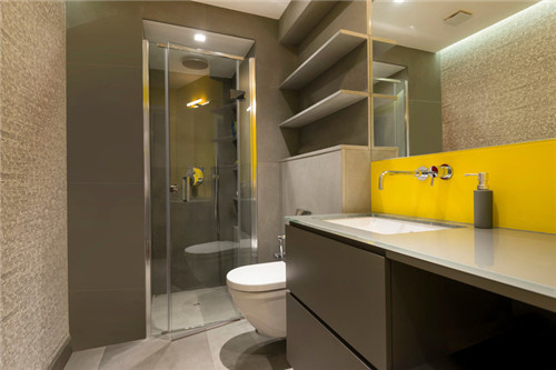 小編的話:不要懼怕使用明亮的顏色,浴室后板的顏色使用是裝飾衛(wèi)浴的好招數(shù)。一些明亮的黃色讓太過現(xiàn)代化太過沉重的浴室多了一些俏皮。