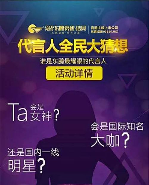 不過,無論代言人是誰,從種種猜測和線索來看,以上這些線索所指向的都是一位人氣大旺、家庭形象佳、實力不凡的影視巨星,無疑是與東鵬行業(yè)領(lǐng)軍品牌的地位以及自身過硬的品質(zhì)相匹配的。