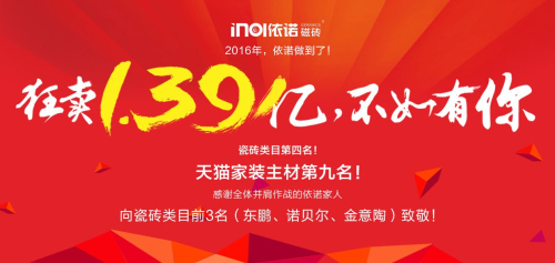 依諾瓷磚感謝所有消費者的信任和選擇;感謝每一位依諾人的并肩作戰(zhàn)和全心全力付出,未來,依諾瓷磚也將繼續(xù)迎合天貓家裝類目大趨勢,進(jìn)一步加強(qiáng)O2O線上線下一體化,踐行新零售,推進(jìn)全渠道變革,建立更合適品牌發(fā)展的電商模式。