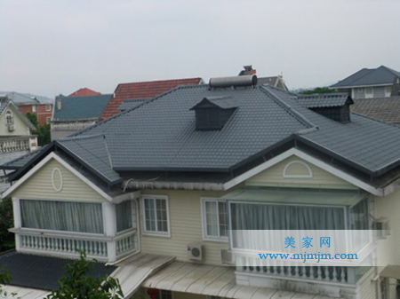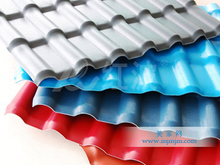 屋頂采用棗紅色《紅波牌》合成樹(shù)脂瓦。