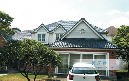 二層復(fù)式設(shè)計(jì)結(jié)構(gòu),采用灰色《紅波牌》合成樹(shù)脂瓦。