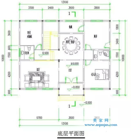 此戶型適合大戶人家,如三代同堂。鄉(xiāng)村生活,男女老少歡聚一堂,其樂(lè)融融,人生如此甚好。