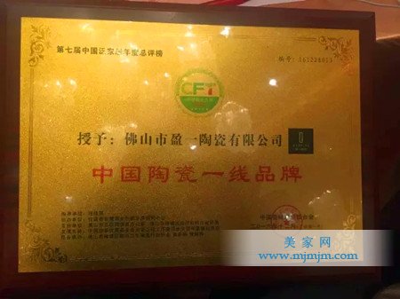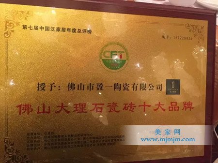 *2016年12月29日,盈一陶瓷在中國泛家居陶瓷總評榜上收獲“中國陶瓷一線品牌”、“佛山大理石瓷磚十大品牌”的榮譽!