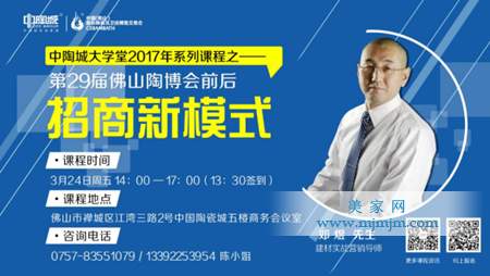 展會(huì)前后,組委會(huì)特邀建材行業(yè)專業(yè)營(yíng)銷(xiāo)咨詢機(jī)構(gòu)的首席培訓(xùn)導(dǎo)師鄧煜先生于3月24日(主題:展會(huì)前后招商新模式)以及4月28日(主題:第29屆佛山陶博會(huì)后的終端提量)對(duì)參展商進(jìn)行培訓(xùn),助力企業(yè)提升銷(xiāo)售業(yè)績(jī)。