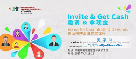 買(mǎi)家又有特權(quán)啦!據(jù)了解,只要您是佛山陶博會(huì)的老買(mǎi)家(可為國(guó)內(nèi)買(mǎi)家),通過(guò)邀請(qǐng)海外新買(mǎi)家(包括港澳臺(tái)同胞)到達(dá)第29屆佛山陶博會(huì)展館現(xiàn)場(chǎng),即可領(lǐng)取100元/位新買(mǎi)家的現(xiàn)金獎(jiǎng)勵(lì),最高可領(lǐng)取500元。