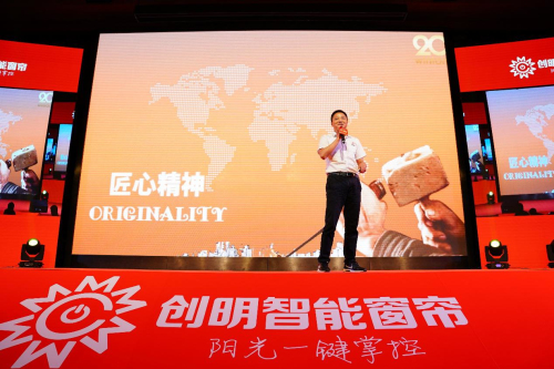 20周年是新的里程碑,20周年意味著新的開始。慶典上,創(chuàng)明集團(tuán)發(fā)布了全新品牌形象,全新品牌標(biāo)志以時(shí)尚黑和中國(guó)紅為主色調(diào),配有宣傳語(yǔ)“創(chuàng)明智能窗簾,陽(yáng)光一鍵掌控”。
