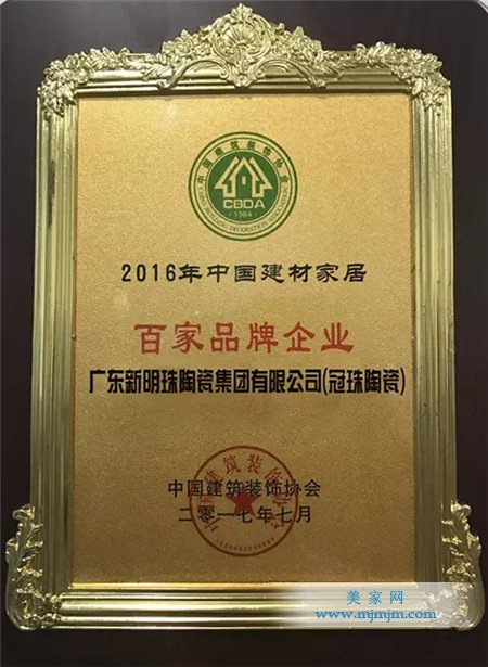 冠珠陶瓷憑借優(yōu)秀的產(chǎn)品研發(fā)創(chuàng)新能力、深得消費者認可的品質(zhì)服務(wù)以及雄厚的品牌實力,獲得“2016年中國建材家居百家品牌企業(yè)”榮譽。
