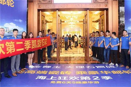 7月18日金尊玉大理石瓷磚“選高端瓷磚乘豪華郵輪”海上狂歡第2季隆重啟航!新航線、新景點、新體驗,免費6天5晚豪華游,漂洋過海深度享受異國風(fēng)情,吸引全國34個省份的一百多位經(jīng)銷商、高端業(yè)主、設(shè)計師、媒體共赴盛筵。