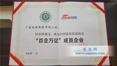 廣東協(xié)進陶瓷憑借20多年的品牌精耕細作和產品厚積薄發(fā),一舉斬獲“2016年中國建材家居百家品牌企業(yè)”榮譽及中國建筑裝飾協(xié)會認證的“百企萬億”成員企業(yè)稱號。