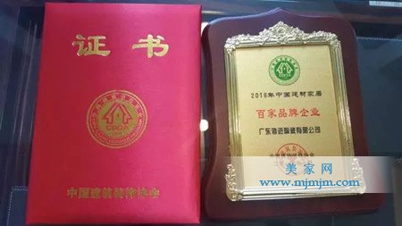 獲頒“2016年中國建材家居百家品牌企業(yè)”榮譽獎牌