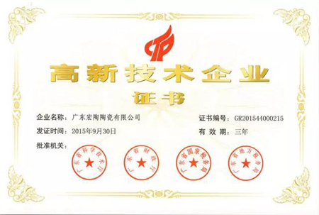 宏陶參與了7項(xiàng)國家標(biāo)準(zhǔn)和2項(xiàng)行業(yè)標(biāo)準(zhǔn)的制修訂,是“國家標(biāo)準(zhǔn)制定企業(yè)”、“國家高新技術(shù)企業(yè)”。