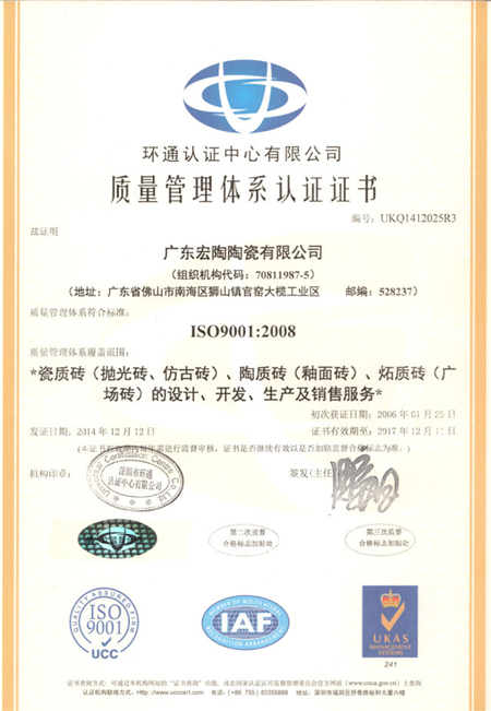 緊接而來的是雄赳赳氣昂昂的榮譽(yù)方陣。宏陶已通過ISO9001質(zhì)量管理體系認(rèn)證、ISO14001環(huán)境管理體系認(rèn)證、OHSAS18001職業(yè)健康安全管理認(rèn)證、能源管理體系認(rèn)證、3C中國國家強(qiáng)制性產(chǎn)品認(rèn)證、中國環(huán)境標(biāo)志產(chǎn)品認(rèn)證,被認(rèn)定為“廣東省著名商標(biāo)”、“廣東省名牌產(chǎn)品”。