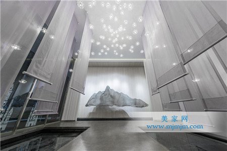 整個展廳靈感來源于設(shè)計師對大自然生活的體驗與感恩,墻身層層的凹凸肌理以及顏色變化,如同巖石經(jīng)過風(fēng)化的洗禮,創(chuàng)造出現(xiàn)代感與未來感等不一樣的視覺感受。