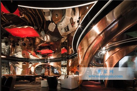 Song's Club想營造一個由時間維度構(gòu)成的由混沌到未來的意象的場所,混沌與未來中間夾雜對體驗的印象寫照。我們順著這些體驗的記憶創(chuàng)造隔而不斷的“山墻”,圍和而又穿透的“山墻”構(gòu)成了空間。人們根據(jù)活動私密與開發(fā)賦予空間不同的屬性,使之聯(lián)動、各自滲透,使得邊界模糊,“山墻”的間隙大小使得空間有著不同情態(tài)得變化。有隱秘的,有豁然開朗的。許多線性垂直相交的裝置構(gòu)筑成“疊加的墻體”。在燈光的作用下,透著斑斕的光影。在這些界面中如自然的樹影婆娑!粗糙的材料與光滑的金屬貫穿不同的元素。使原始與未來的因素在同一個空間發(fā)生趣味的碰撞。
