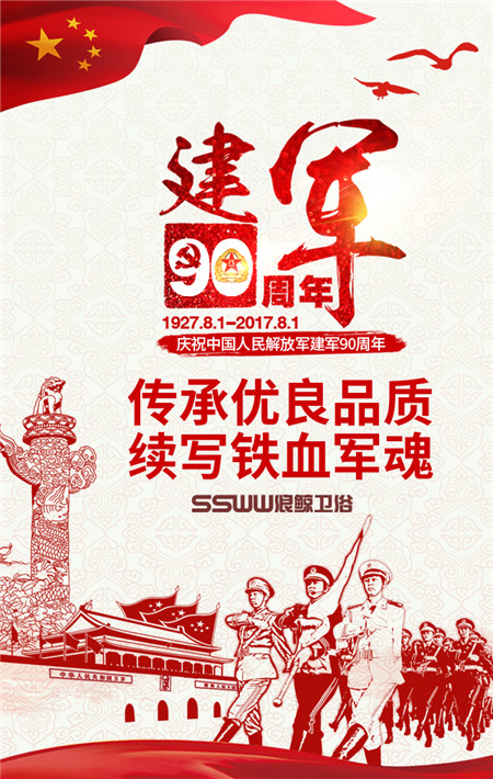 今年,是中國解放軍建軍九十周年,在這個(gè)特殊的日子,中國解放軍首次舉行以慶祝建軍節(jié)為主題的專項(xiàng)閱兵,向世界展現(xiàn)中國軍隊(duì)的強(qiáng)軍成果。浪鯨衛(wèi)浴為人民解放軍送上祝福,祝賀中國解放軍建軍九十周年。