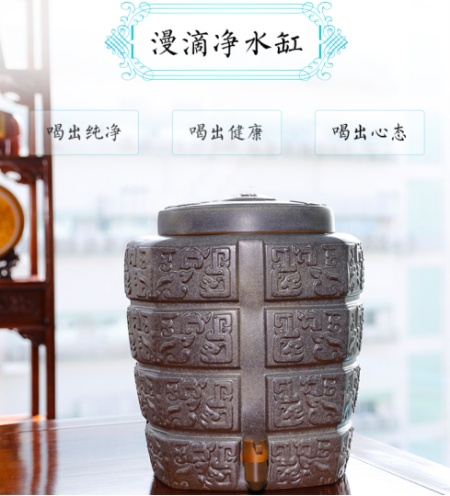 第三層可為微量元素補(bǔ)充:經(jīng)碳縫流出的水質(zhì),將呈弱堿性,并含有豐富的微量元素,為身體補(bǔ)充必備礦物能量。第四層為紫砂陶缸體過濾,可在壁內(nèi)釋放遠(yuǎn)紅外線,有效殺菌。