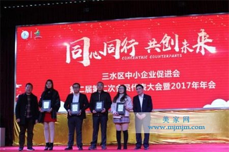 三水區(qū)中小企業(yè)促進(jìn)會會長、廣東合和建筑五金制品有限公司董事長謝耀洪先生為新加入的副會長單位頒發(fā)牌匾