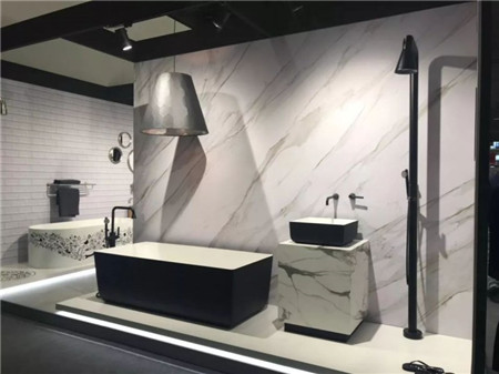 此次展會,從整體設(shè)計色彩到新納米材質(zhì)的運用,都讓人眼前一亮,印象深刻。比如在產(chǎn)品上大膽運用祖母綠、水紅色等色彩,做得相當?shù)轿弧P虏馁|(zhì)的運用主要體現(xiàn)在浴室柜的材質(zhì),板材同步壓紋的應(yīng)用、巖板的使用、亞克力及pvc的結(jié)合和洗手盆臺面也出現(xiàn)個性化紋路設(shè)計的風格。